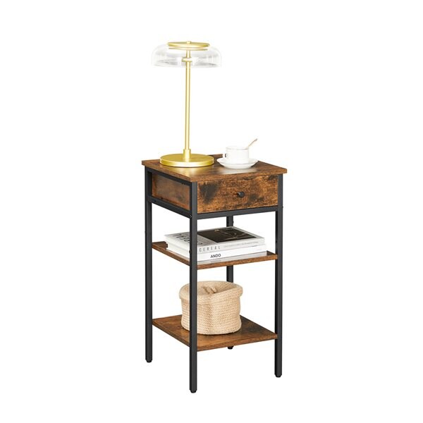 Sidebord med en skuff og 2 oppbevaringshyller - Rustikk brun / svart