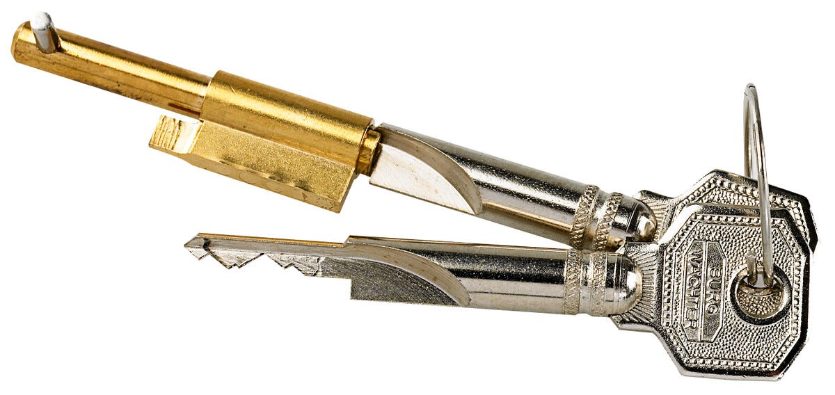Innstikkslås/sikkerhetslås til dør med nøkkelhull