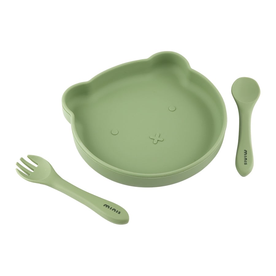 Minis BABYSERVISET TALLERKEN OG BESTIKK GRØNN SILIKON