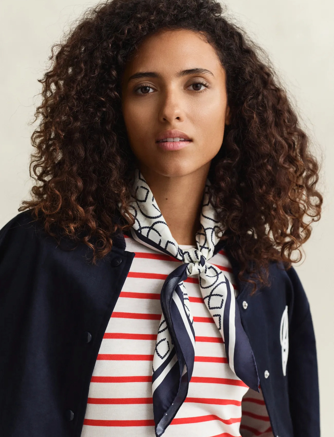 GANT Nautical Stripe Print Silk Scarf - Red - ONE SIZE