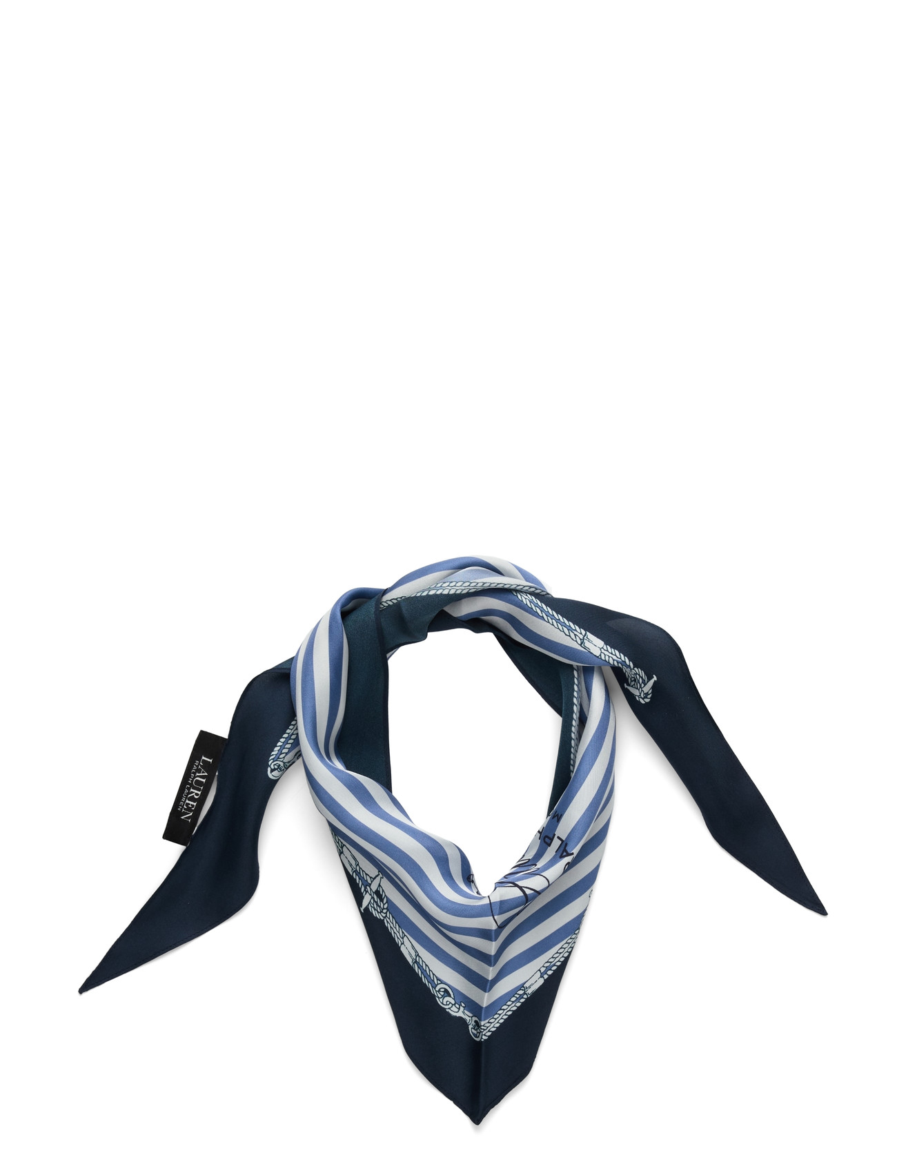 Lauren Ralph Lauren Striped Crest Silk Diamond Scarf - Navy - ONE SIZE