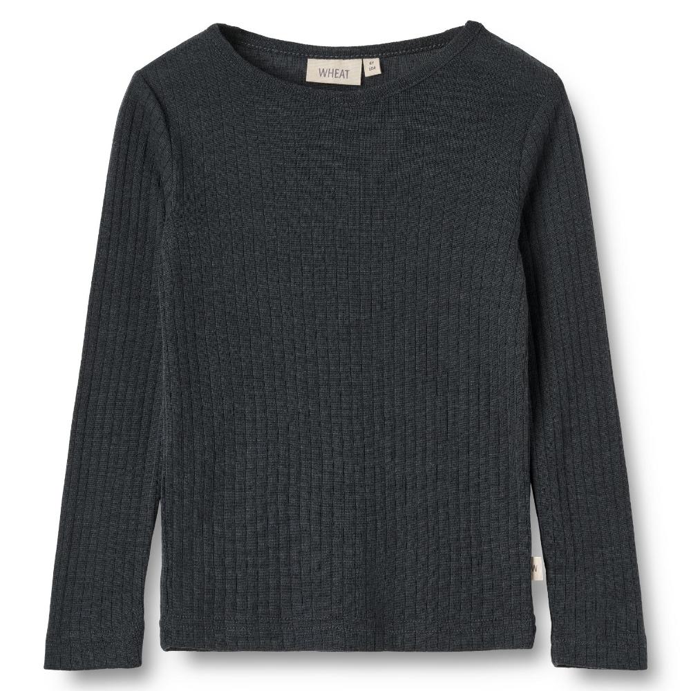 Wheat Wool Silk t-shirt L/S Alfie - navy - 110