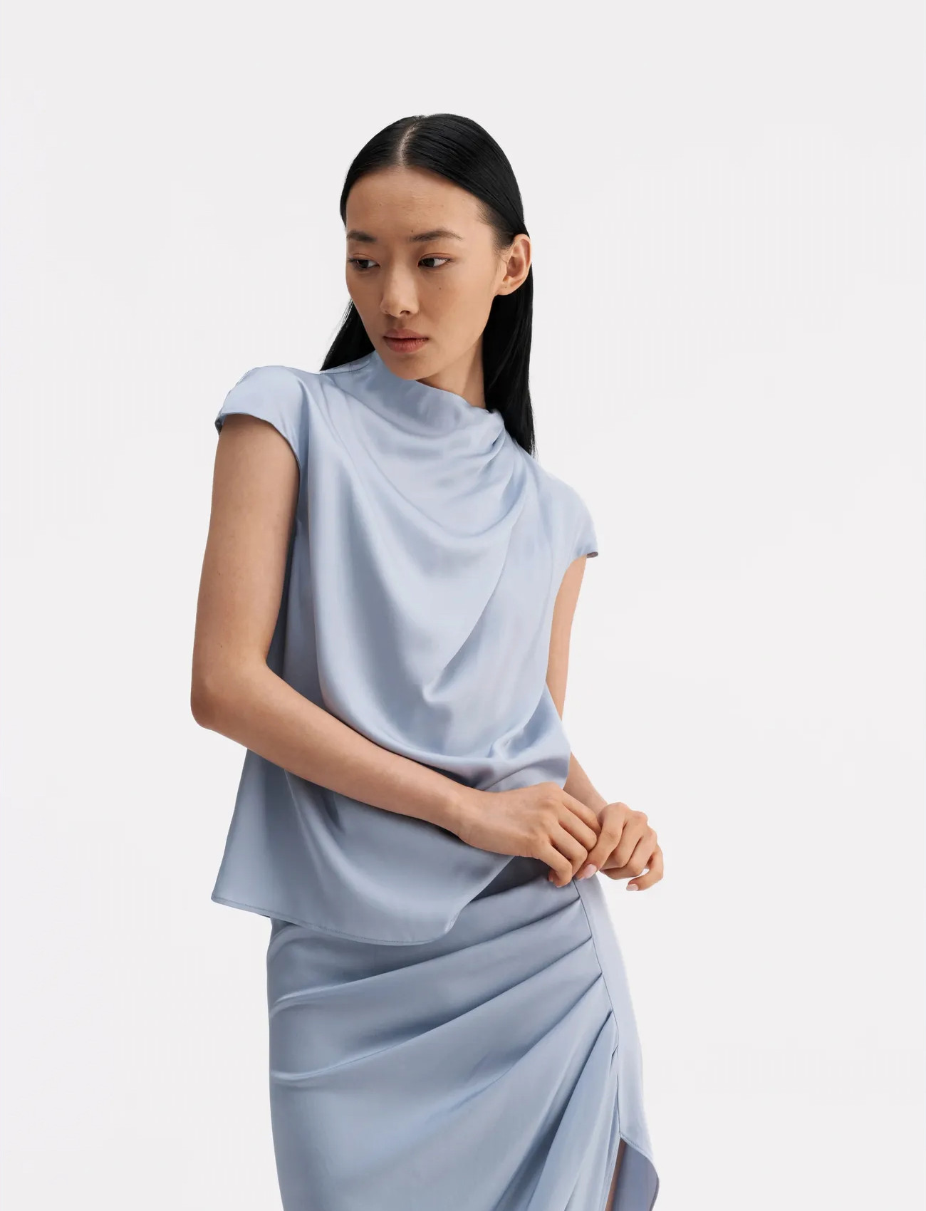 MOS MOSH Mmastrid V-Neck Silk Tank Top - Blue - S