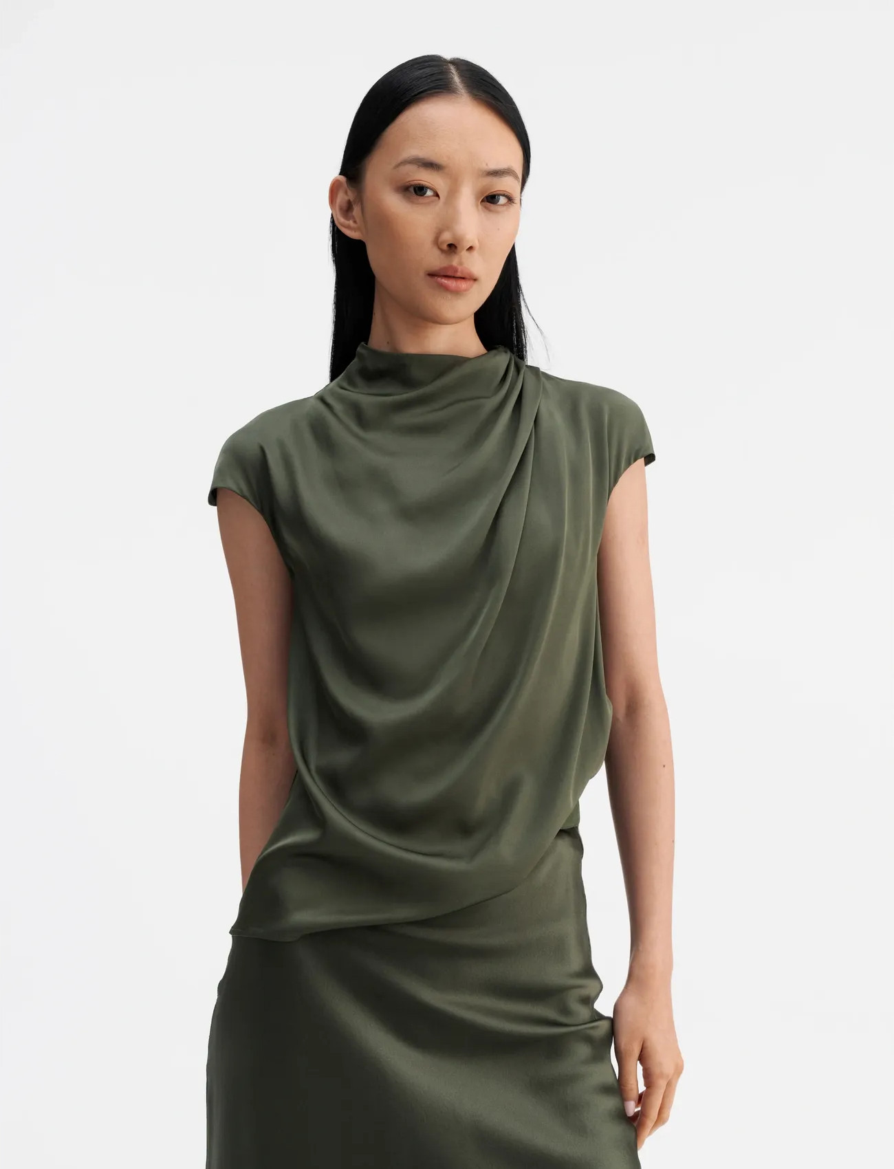 Ahlvar Gallery Lima Silk Top - Khaki green - XS
