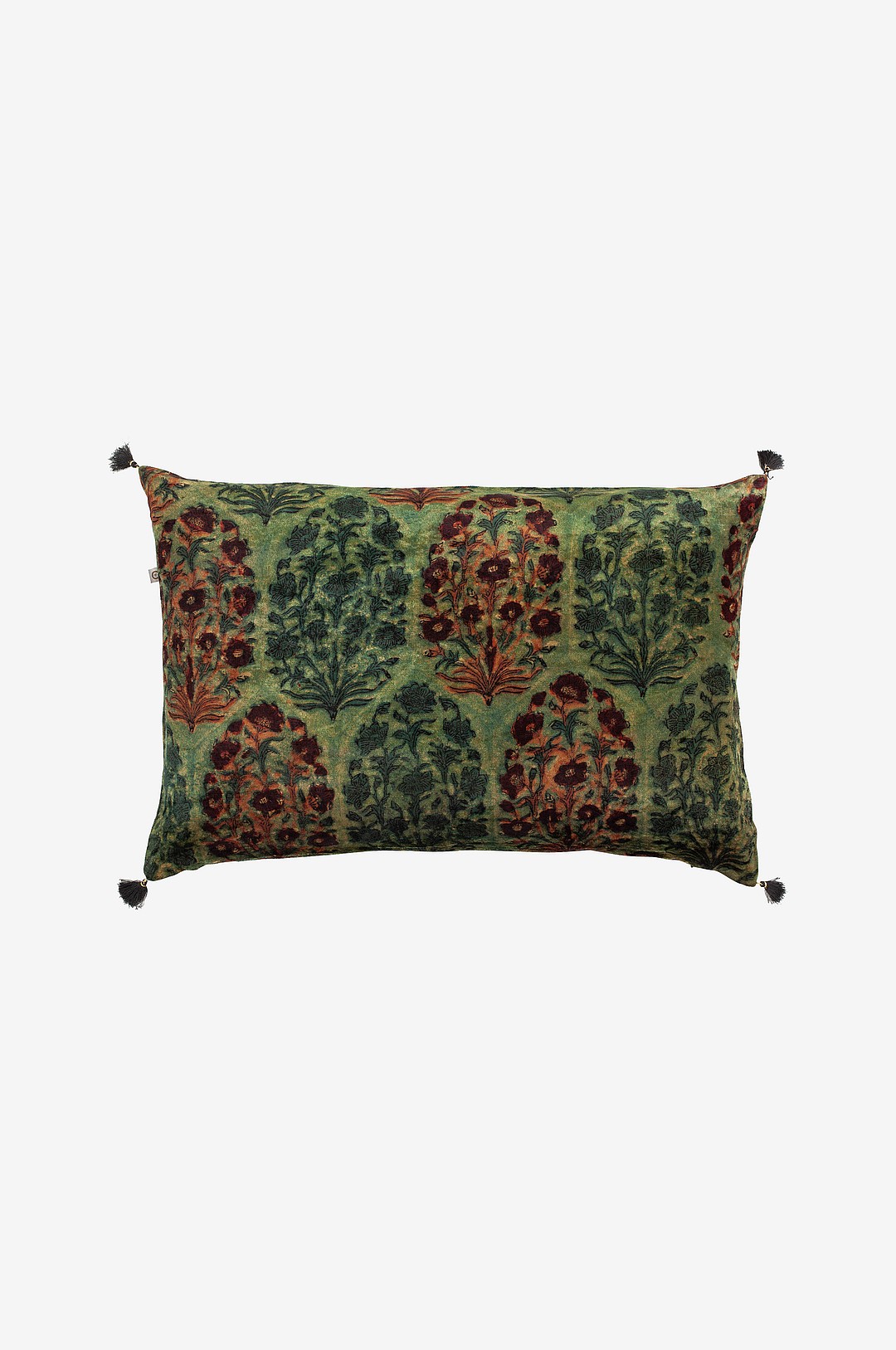 Chamois - Putetrekk i silke med tassles Bagru - Grønn