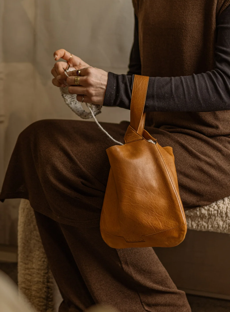 Muud Dzana Gå-og-strikk Strikk-på-farten Skinnveske_Whisky