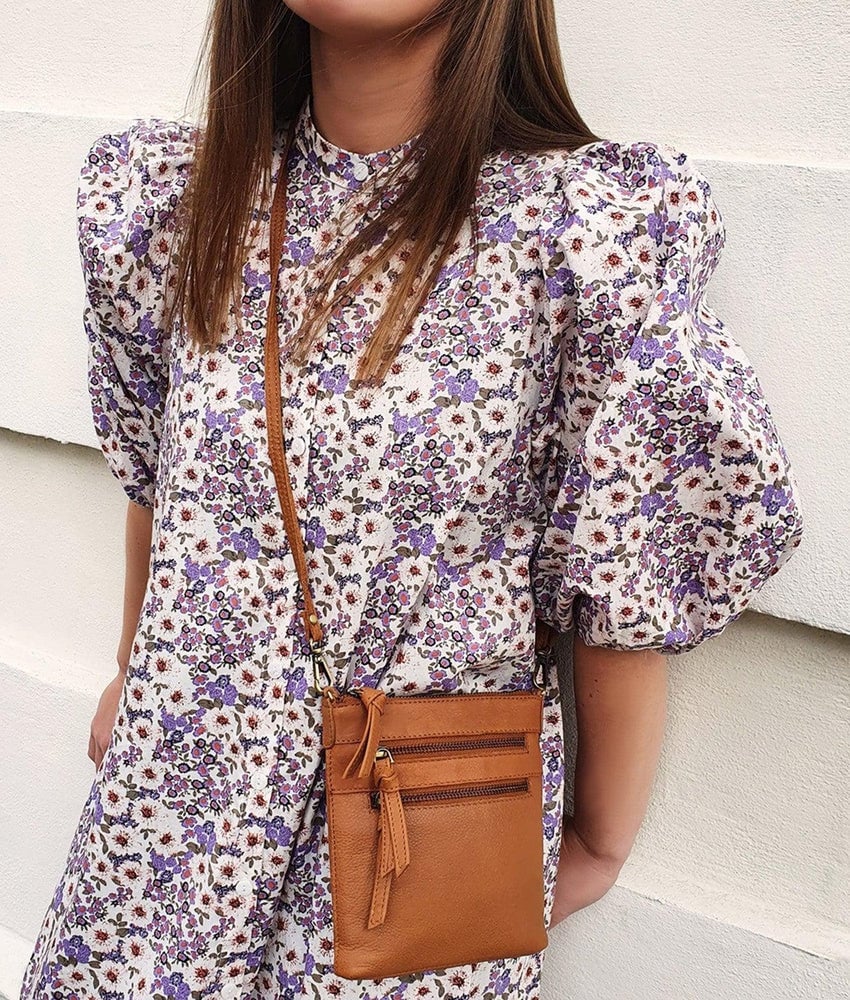 Treats Rosa liten crossbody skinnveske Cognac