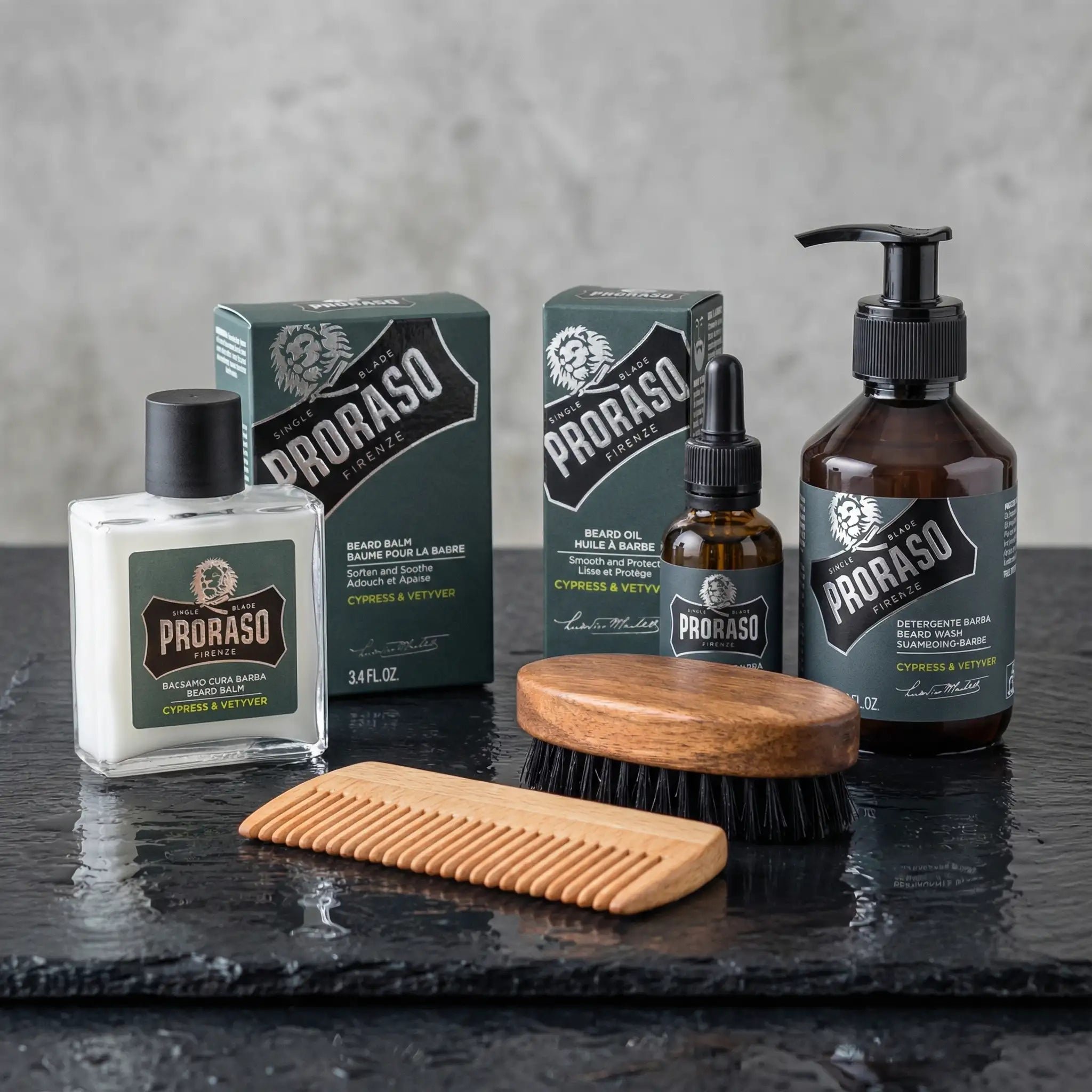 Skjeggsett - Proraso + børste + kam