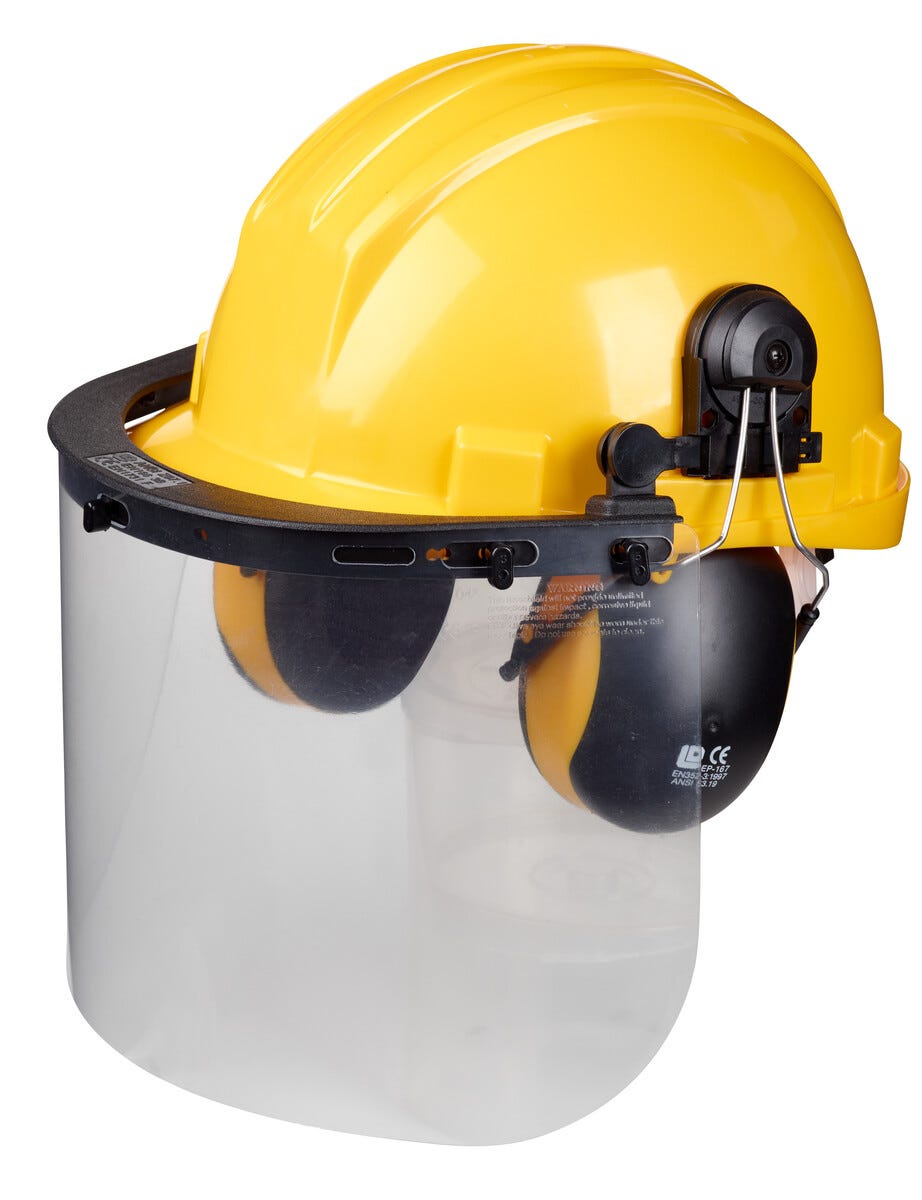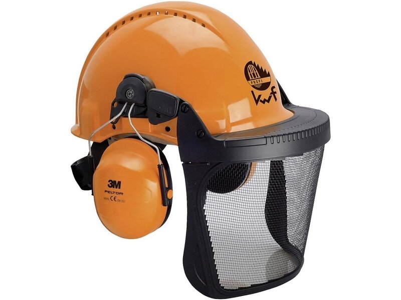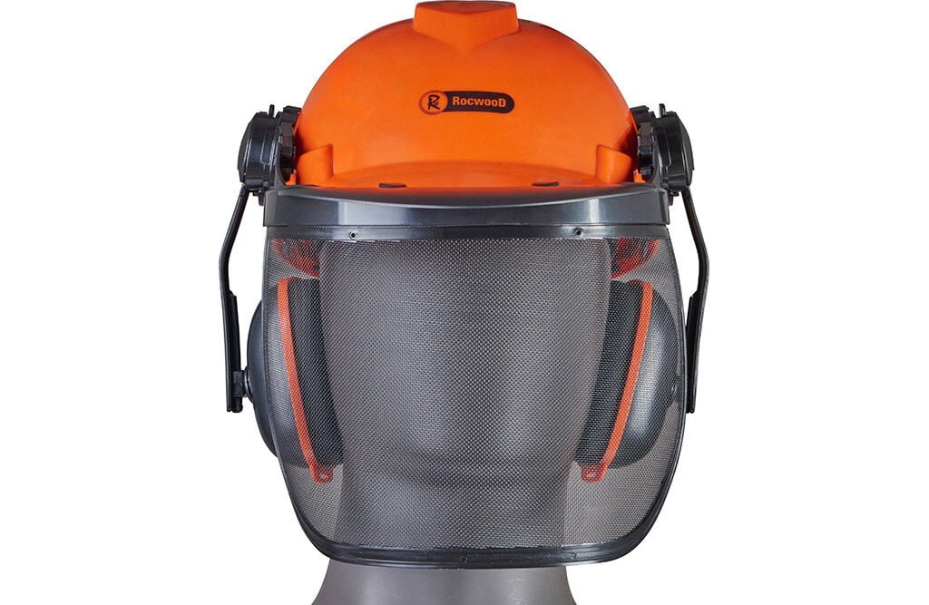 Skogshjelm med nettingvisir og hørselsvern