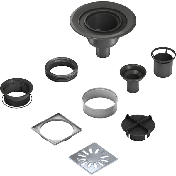Wedi Sluksett horisontalt firkant dn50 fundo dusjelement med punktavløp