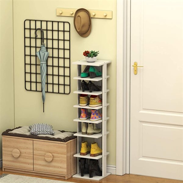 Smal skohylle med 7 nivåer - Hvit