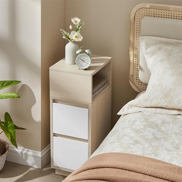 Smalt nattbord med 2 skuffer og ett åpent rom - Beige/Hvitt