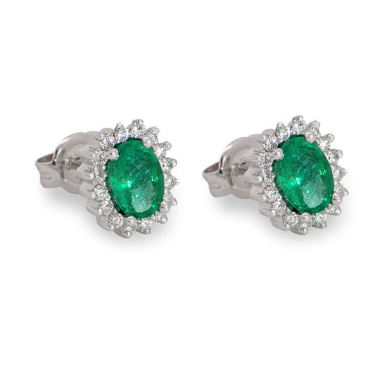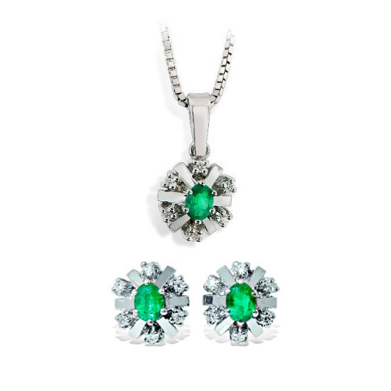 Diamantsett i hvitt gull med smaragd - 27058/760054