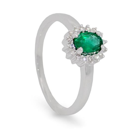 Diamantring i hvitt gull med 0,14 ct W-Si og smaragd 0,47 - 57725200