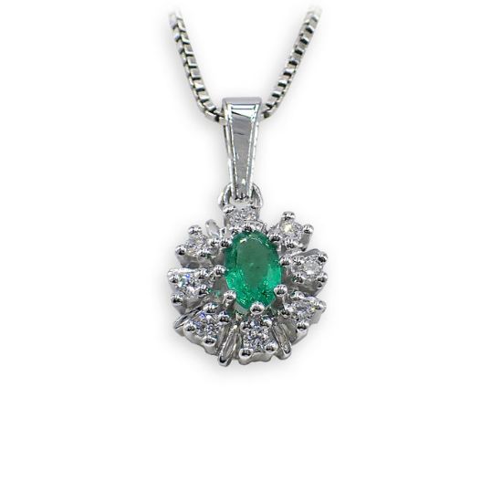 Diamantsmykke med 0,12 ct W-Si og smaragd - bur570057