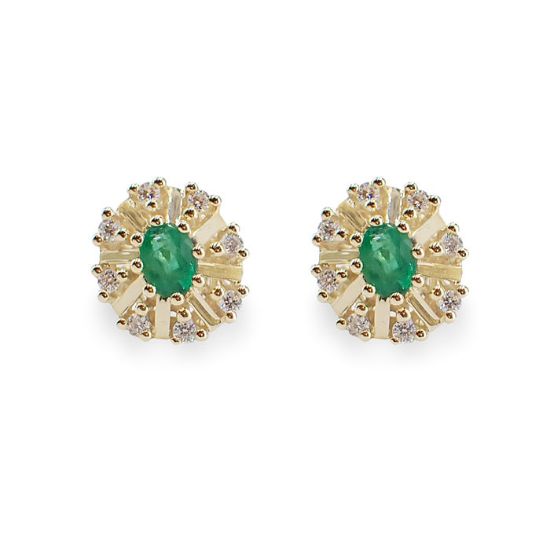 Diamantøredobber i gult gull med 0,16 ct W-SI og smaragd - bur760088