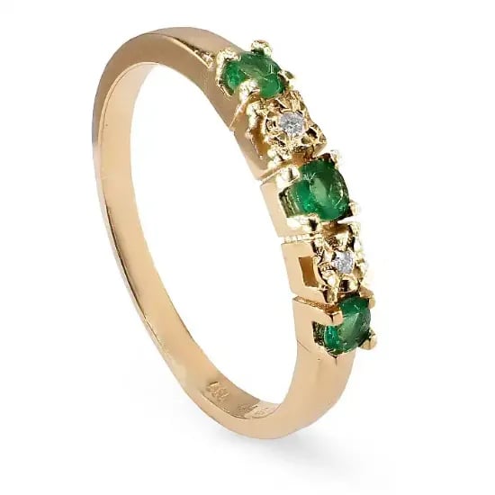 Diamantring i gull 14kt med smaragd og 0,013 ct W-Si - COC003760s