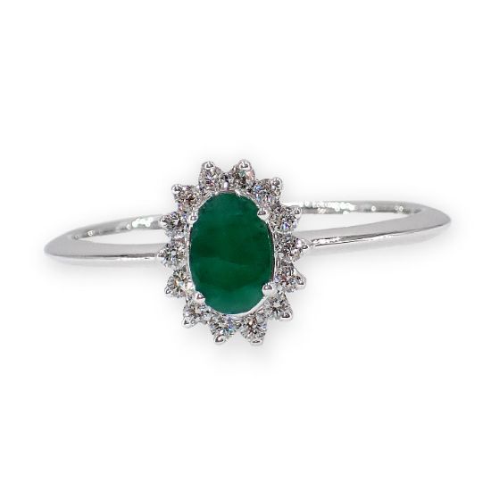 Diamantring i gull 14kt med smaragd og 0,013 ct W-Si - COC00376s