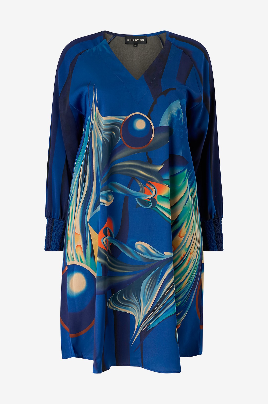 NO. 1 BY OX - Kjole Loose V Neck w LS And Smock Cuffs - Blå