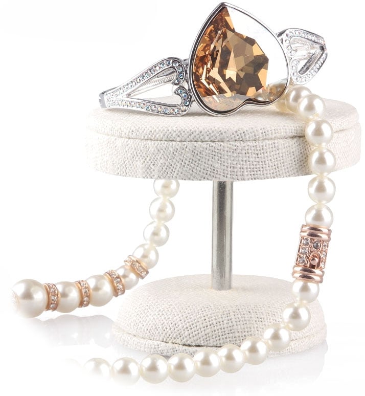 Smykkeholder - 4 stasjoner - Hvit lin - 20/15/10/8 cm