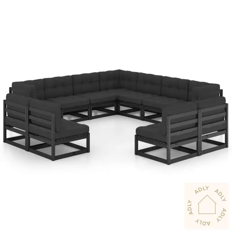 vidaXL Sofagruppe med pute 11 stk Svart 90 x 55 x 71 cm
