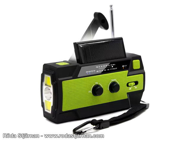 Sveiv radio med solcelle og sensorstyrt lampe