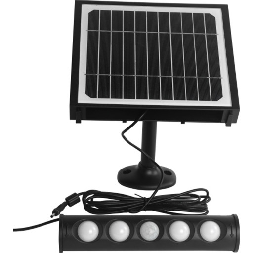 Solar portabel vegglampe 10W 3000 Kelvin IP65 utendørs med solcelle og sensor - Svart