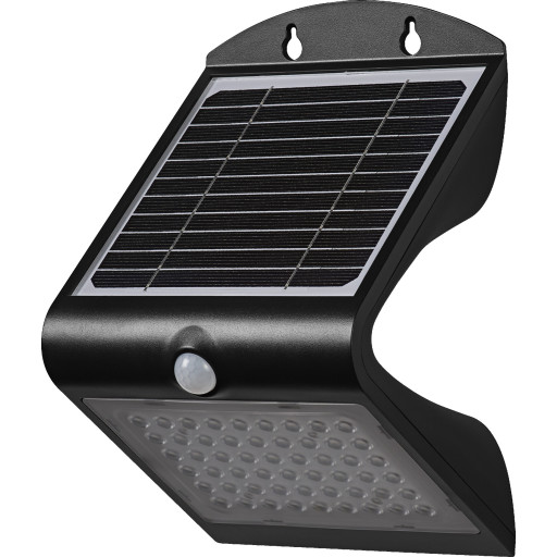 Solveig vegglampe utendørs 4,8W 3000 Kelvin m/bevegelses sensor - Solcelle - Svart