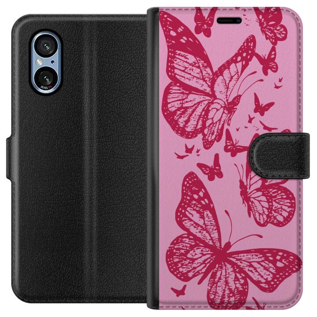 Sony Xperia 5 V Sort Lommebokdeksel Fjärilar