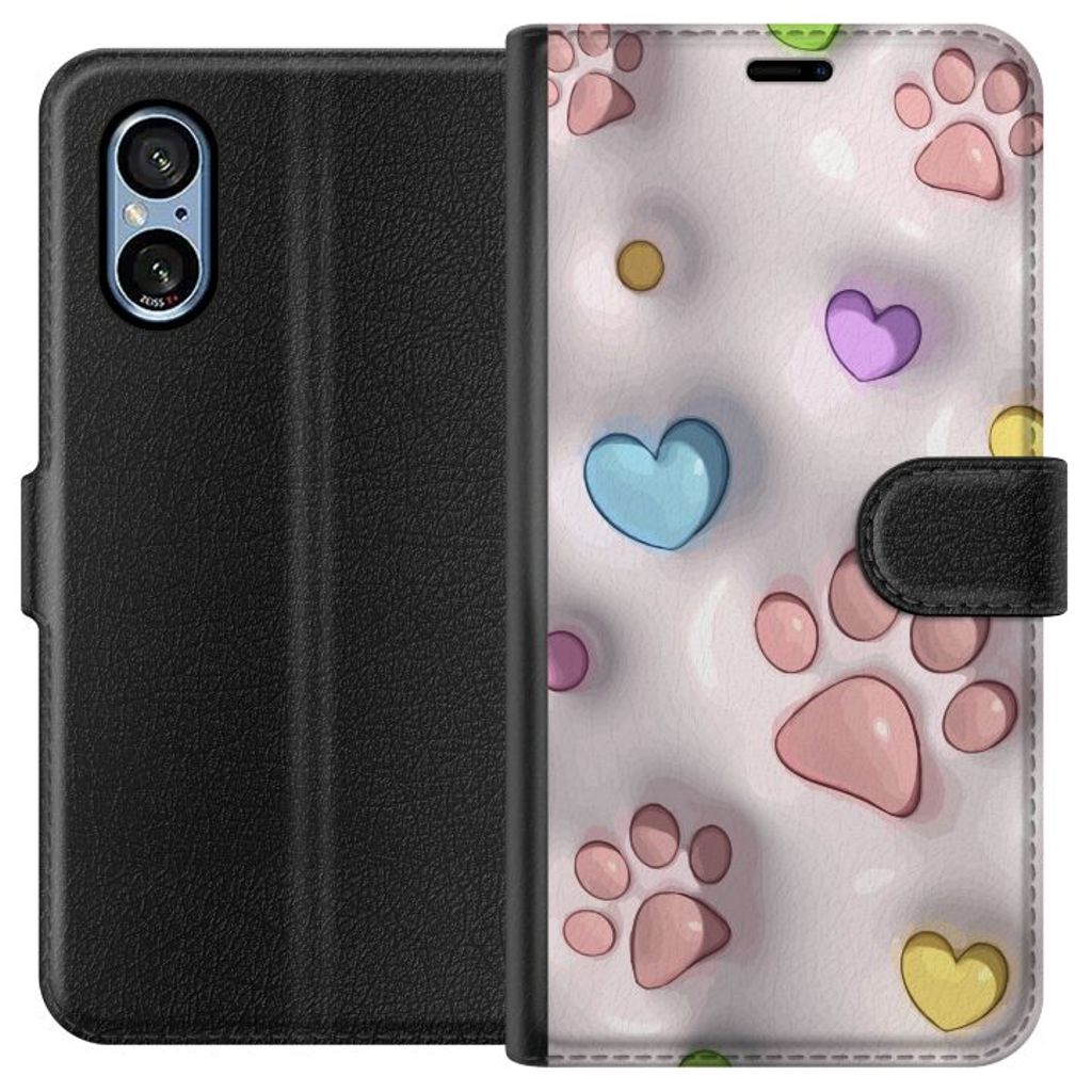 Sony Xperia 5 V Sort Lommebokdeksel Fluffiga Tassar