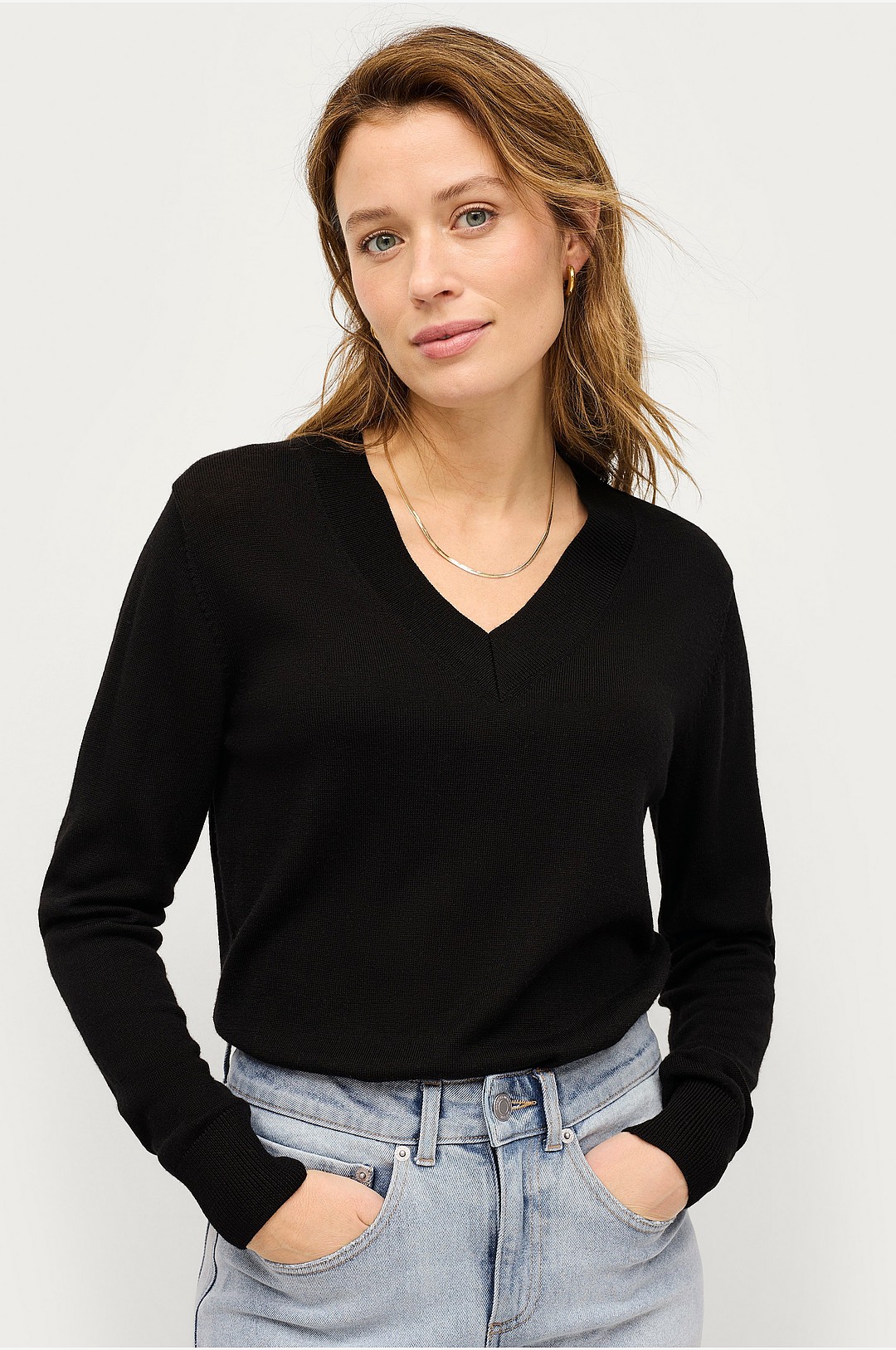 Ellos Collection - Finstrikket ullgenser med v-hals - Svart
