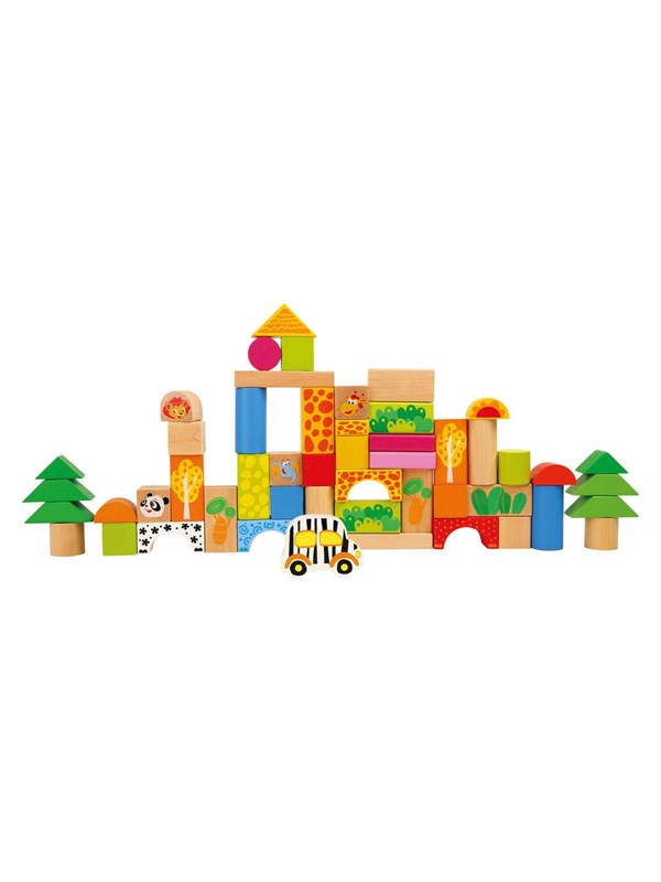 Small Foot - Wooden Building Blocks Zoo in Shape Sorter Bucket 50dlg.