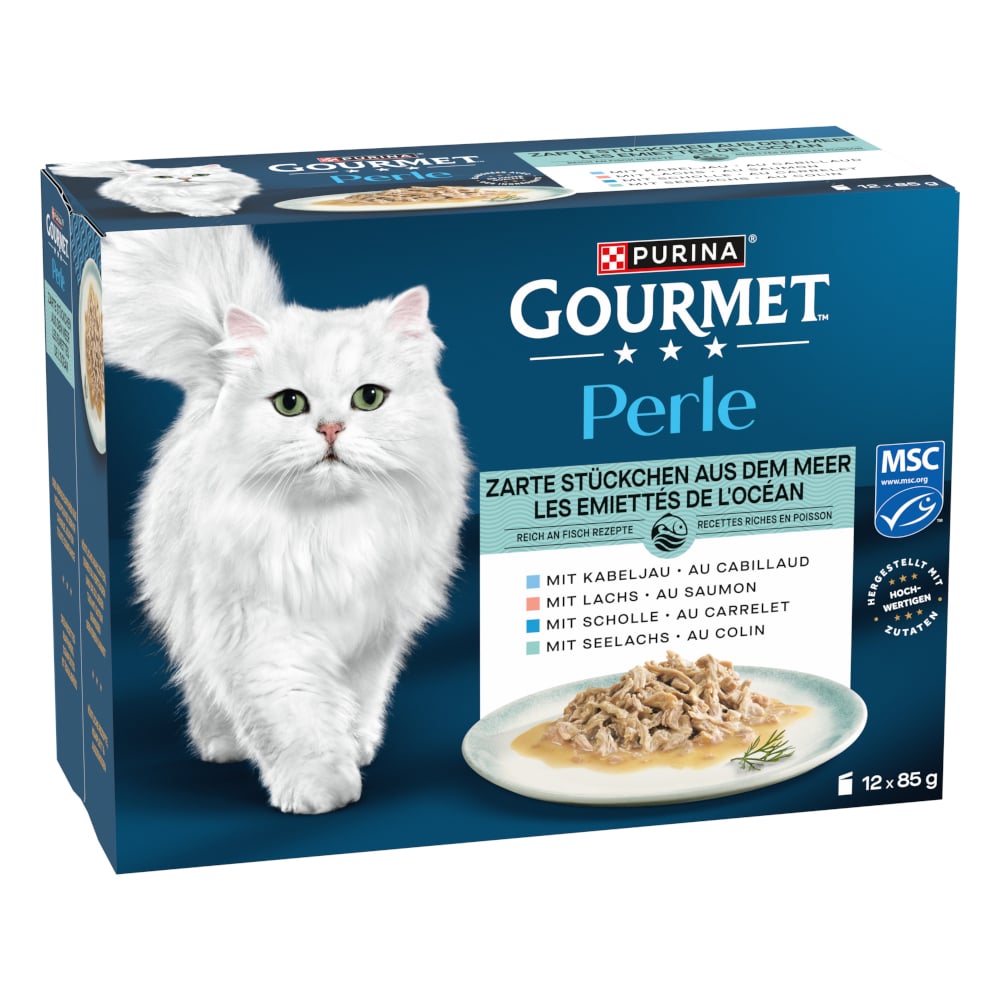 Sparepakke Gourmet Perle blandet utvalg 24 x 85 g - Møre biter fra havet i saus (4 sorter)