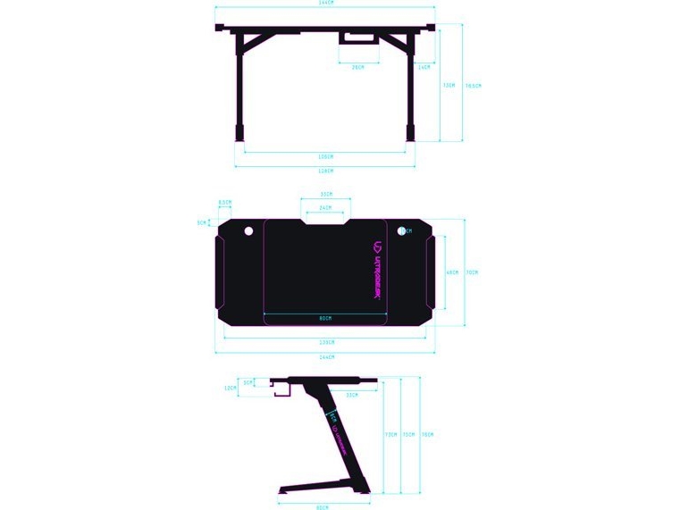 Spillebord Ultradesk Space Xxl, Med Rgb-Belysning, Sort Med Rød Matte