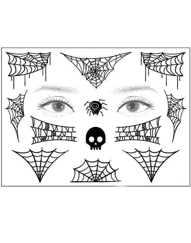 Ark med Bloddråper, Spindelvev, Ansiktsdekorasjoner og Andre Skumle Tatoveringer (Fake Tattoo)
