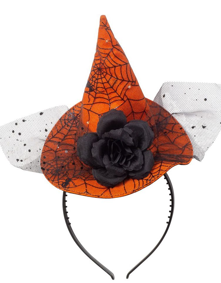 Oransje Heksehatt med Svart Spindelvev, Rose & Slør