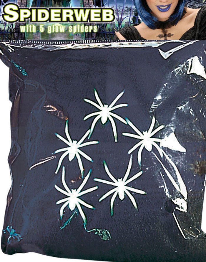 Svart Spindelvev med 5 stk Grønne Edderkopper som Lyser i Mørket