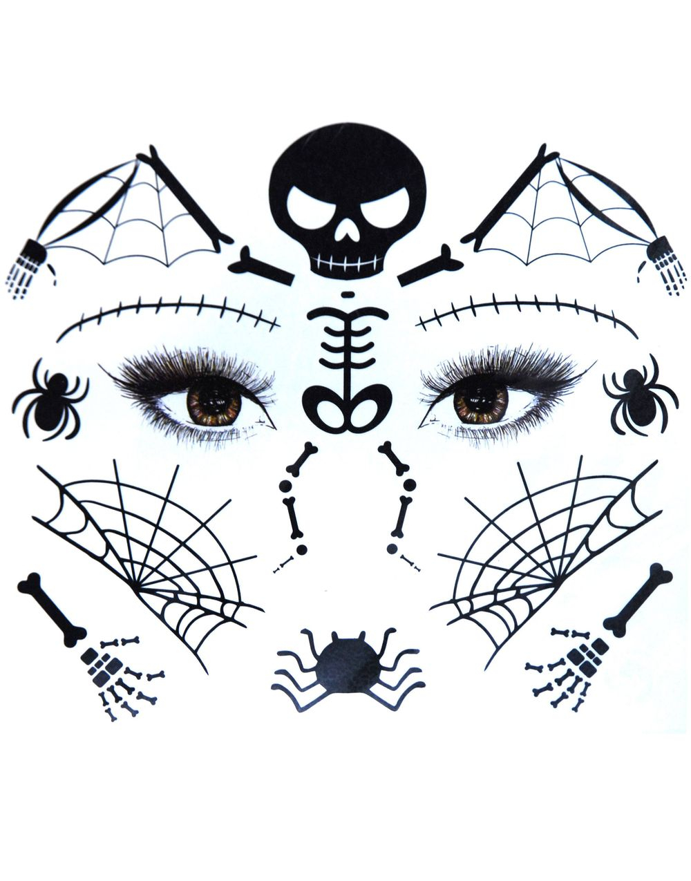 Ark med Skjelett, Spindelvev og Andre Halloweentatoveringer (Fake Tattoo)