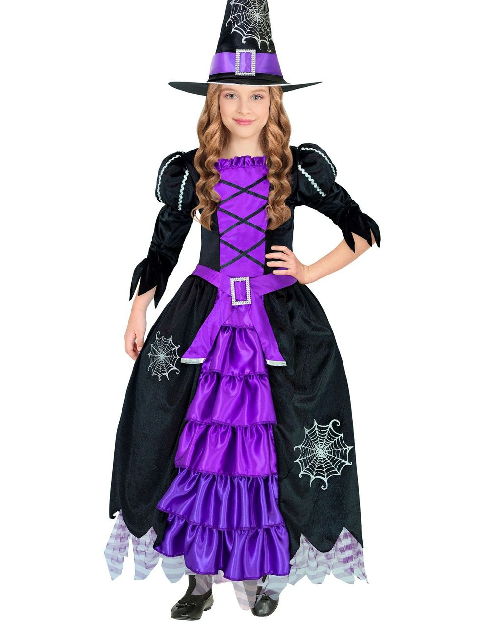 Svart og Lilla Heksekostyme med Spindelvev Motiver til Barn