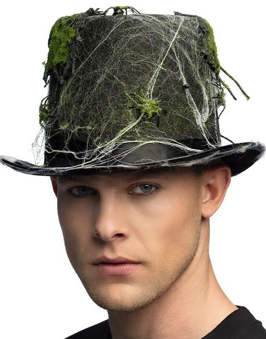 Svart Flosshatt med Mose, Spindelvev og Edderkopp
