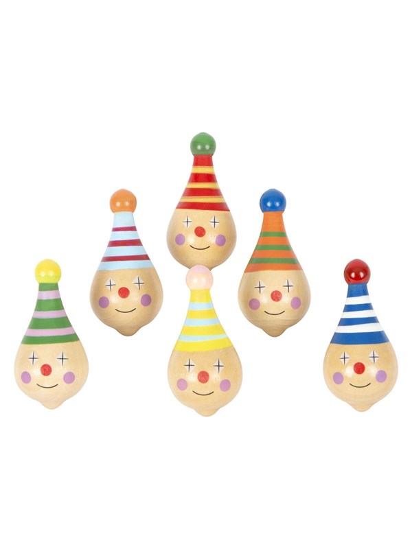 Small Foot - Wooden Spinning Top Clown 6pcs.