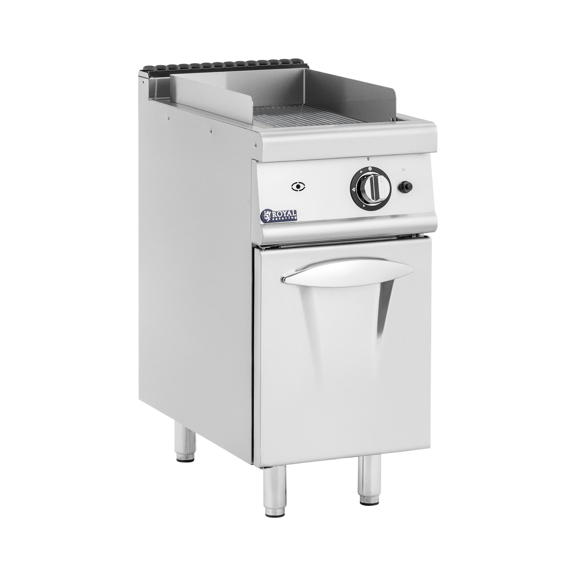 Royal Catering Stekeplate gass - 12 kW ribbet 50 300 °C propan / LPG naturgass underskap