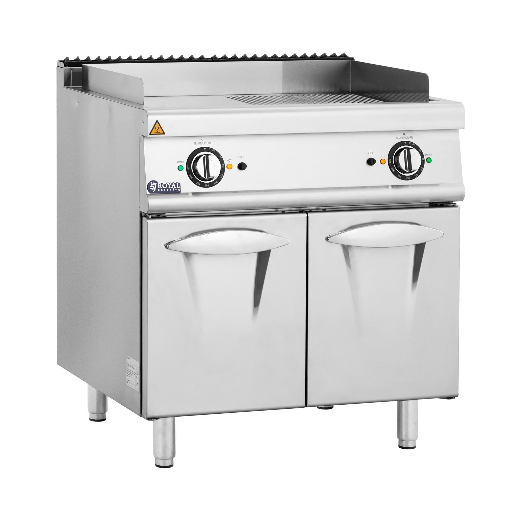 Royal Catering Dobbel stekeplate - 10,8 kW glatt og ribbet underskap