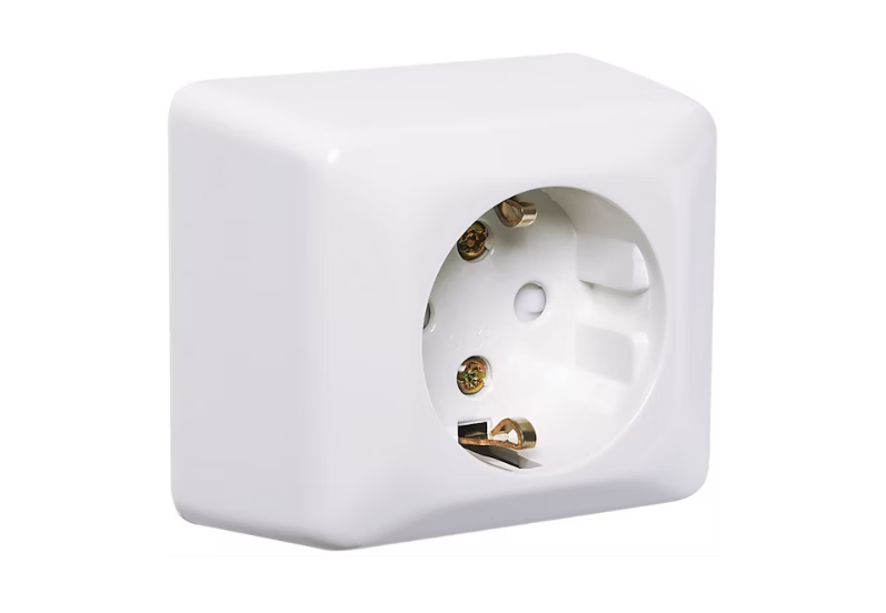 Namron Edge stikkontakt enkel påvegg jord polarhvit