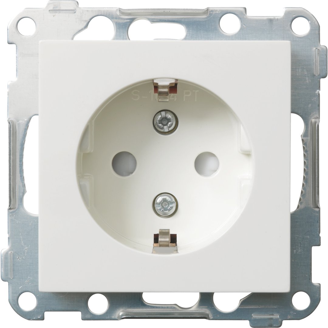 Stikkontakt Enkel Innfelt Jord u/ramme S1014 PT Polarhvit