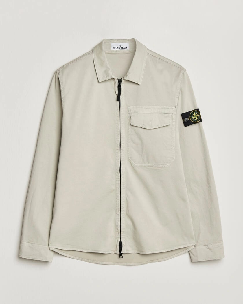 Stone Island Cotton Stretch Zip Overshirt Pearl Grey
