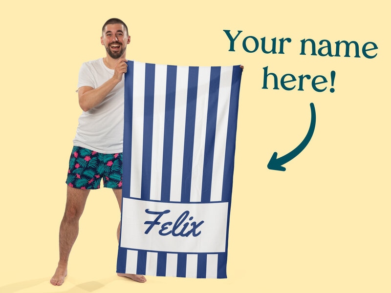 Personlig badehåndkle med navn - Stripete