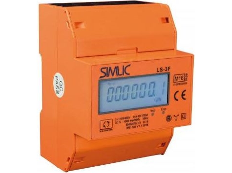 Simet Toveis 3-Fase Strømmåler 10A (100A) Mid Simet Simlic Ls3-Fb 85403010 Tilbakestillingsfunksjon