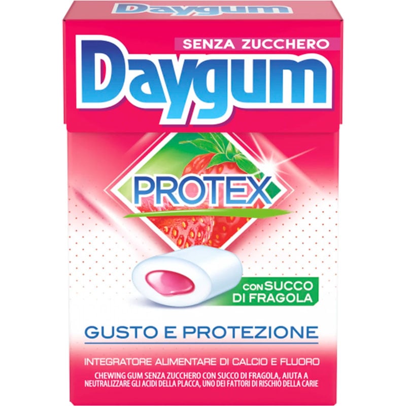 Xylitol Tyggegummi DAYGUM Protex Strawberry 30g sukkerfri med aktiv beskyttelse av tennene