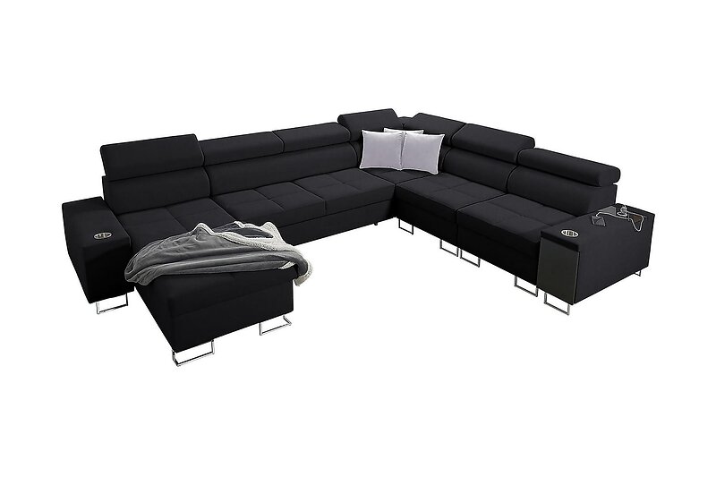 Kotori Hörnbäddsoffa m. Sjeselong Svart CO-LOU-RT-10FL